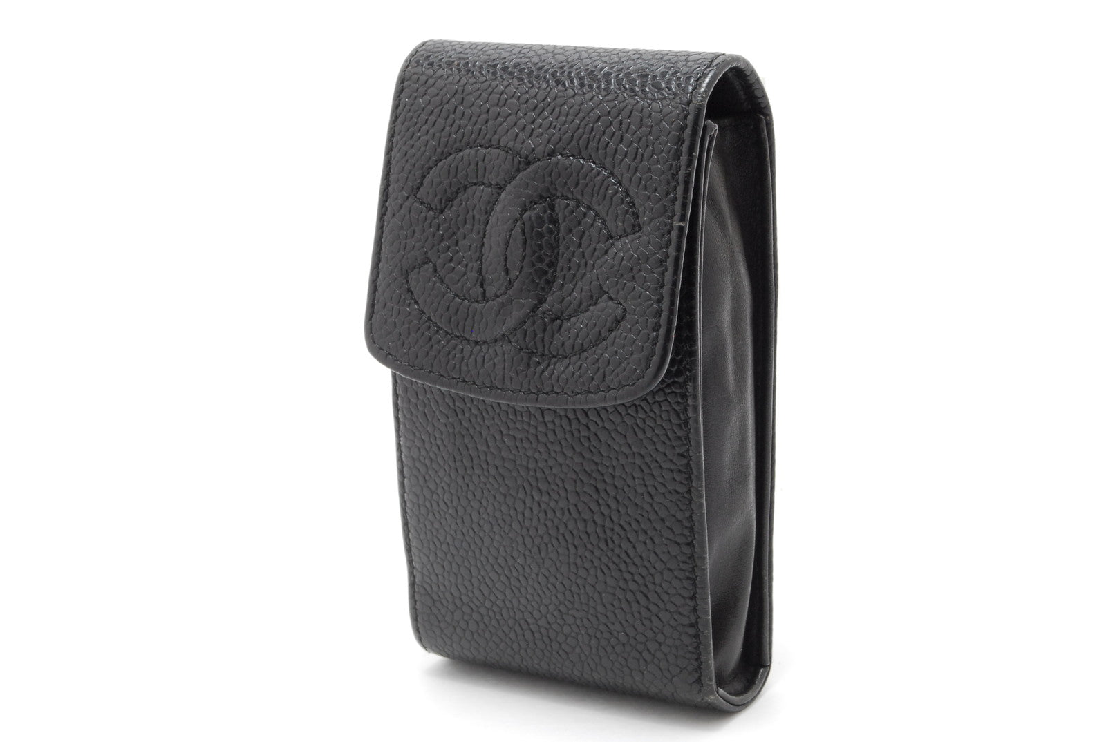 CHANEL Pouch Coco Mark Caviar Skin Black Authentic AA470