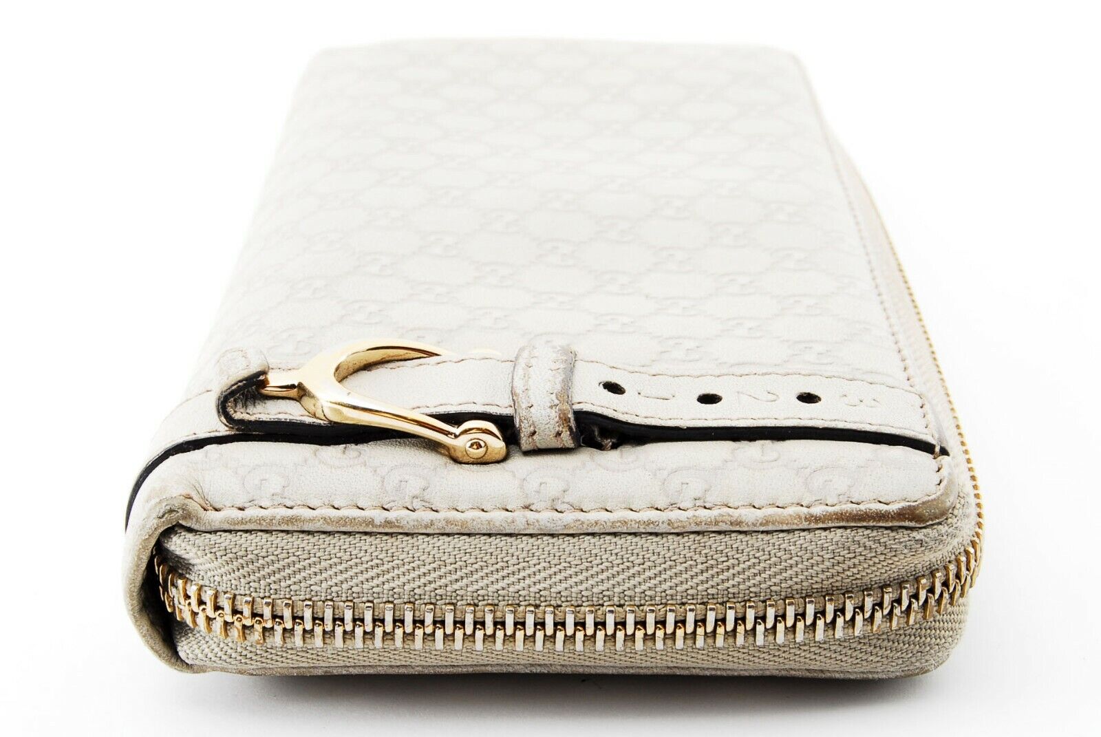 【Rank B】Auth Gucci Round Zipper Sima Leather Ivory from Japan R53